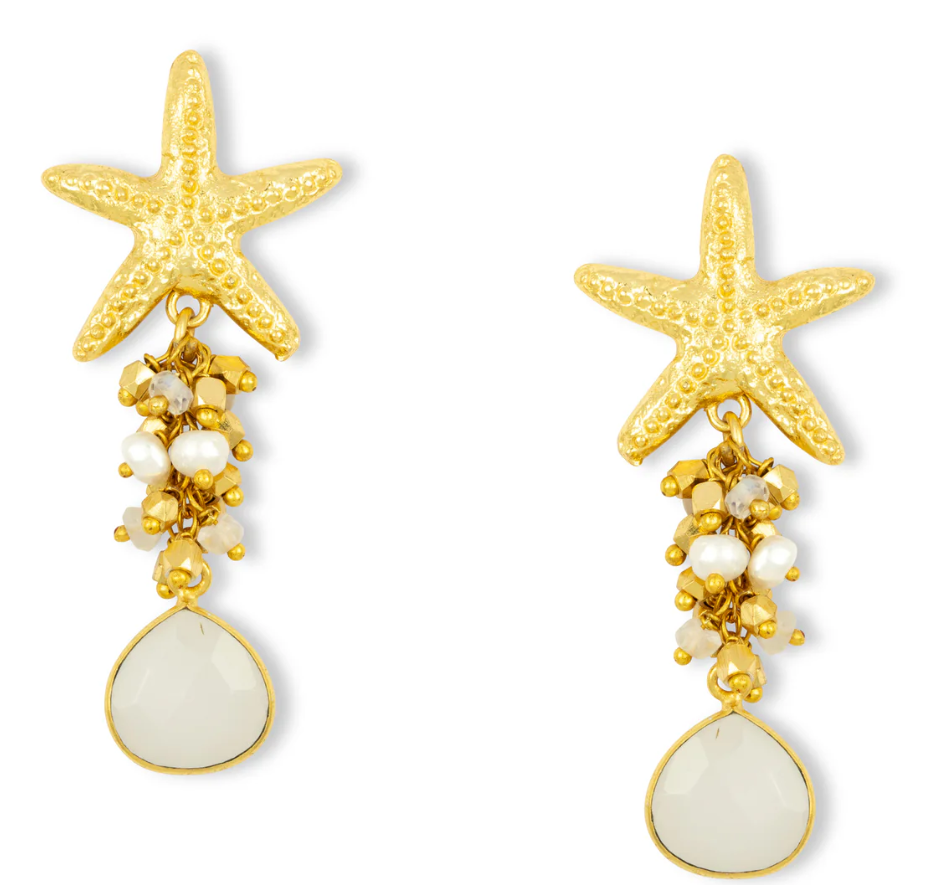 Starfish stud and bead cluster drop earrings