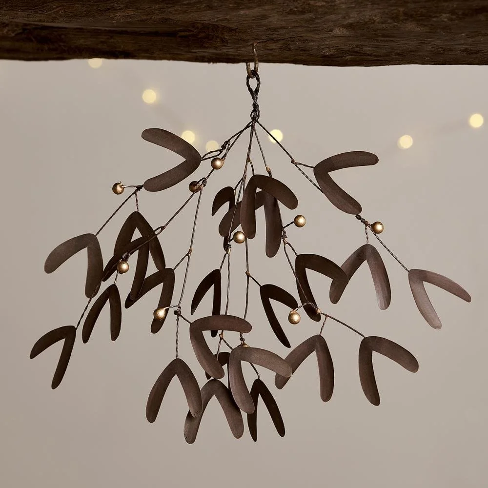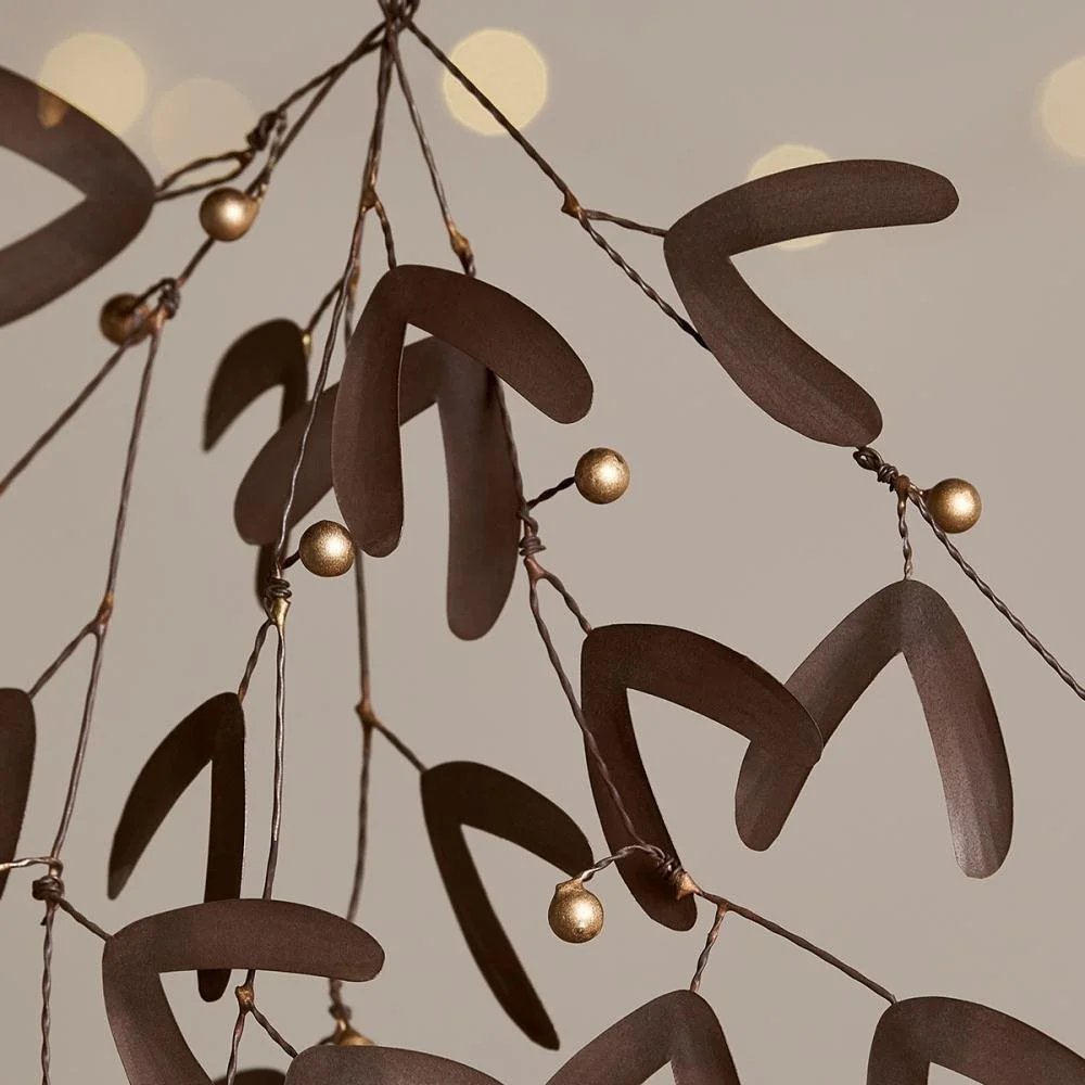 New for this 2024 season, our Avni Mistletoe spray is a wonderfully pared-back and sculptural piece. Made from fine antique-finish brass, this is a solid decoration, yet delicate in appearance, with berries in a pearlescent shade of silver-white in muted tones that would be beautiful hung above a doorway. The beauty of this piece also lies in the fact it can be packed away and brought out year after year.